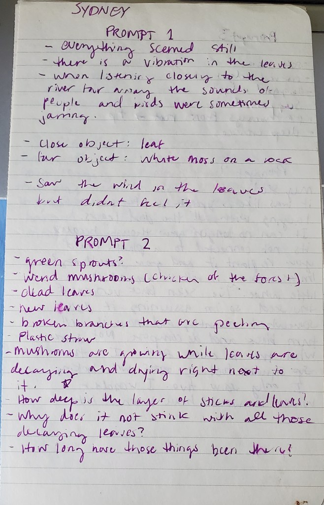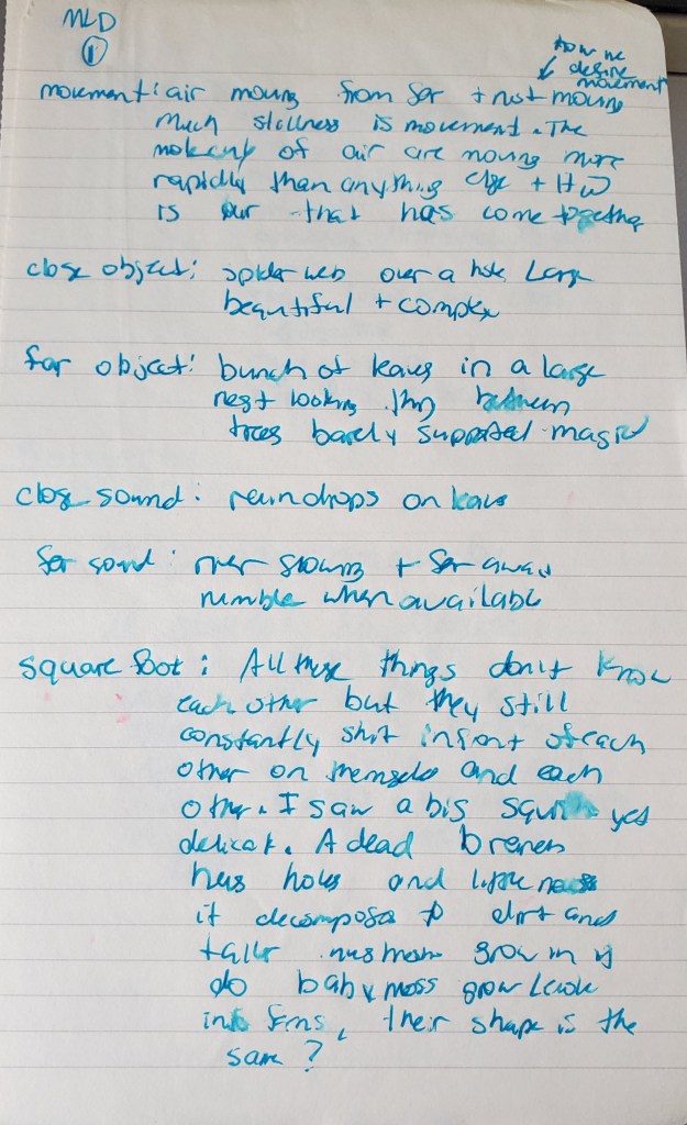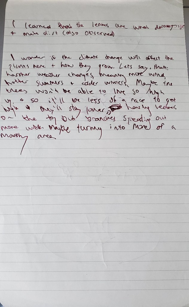 This is Sydney’s physical response to the Collaborative Observation score that details the system of death and regeneration within the forest.