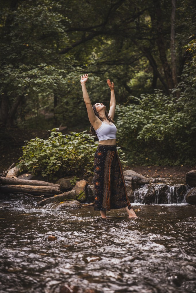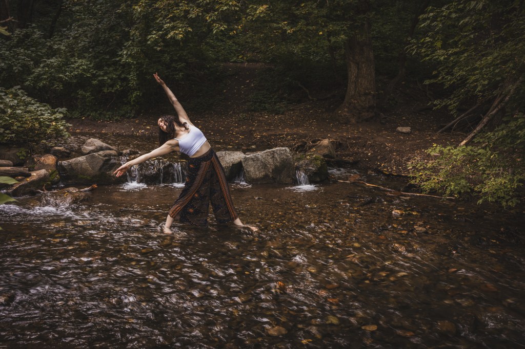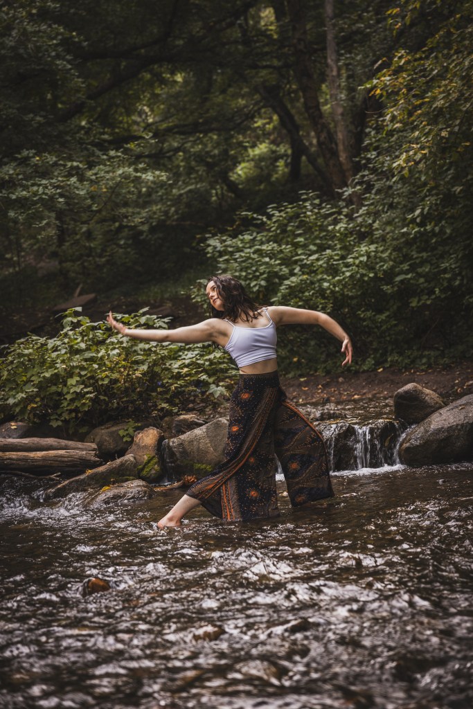 My creative process is centered in an ethic of body as ecosystem. I work to physicalize the relationships between the body and our embedded environment through site-specific, experiential research and improvisational workshops. I investigate complex group relationships that investigate the interconnected pulling, falling, resisting, and supporting forces at play in our own (human and non-human) communities, seeking to dissolve the skin boundary and engage our imaginations in more than human awareness. To challenge traditional notions of performance spaces I work with projections, film, sound, and interactive technology to create immersive performances, installations, and experiences, often in collaboration with artists of other mediums. I seek to use my voice to make visible the invisible forces that are the truth of how we experience the world and reveal connections that we cannot see with our eyes – envisioning and transforming our collective idea of where our bodies end and where they begin.